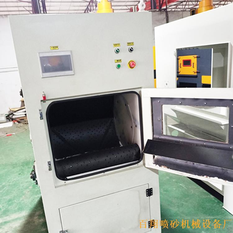6、环带式,可带动工件翻转滚动抛射方式,可直接将产品倒入喷砂作业,亦可加滚篮作业方式。