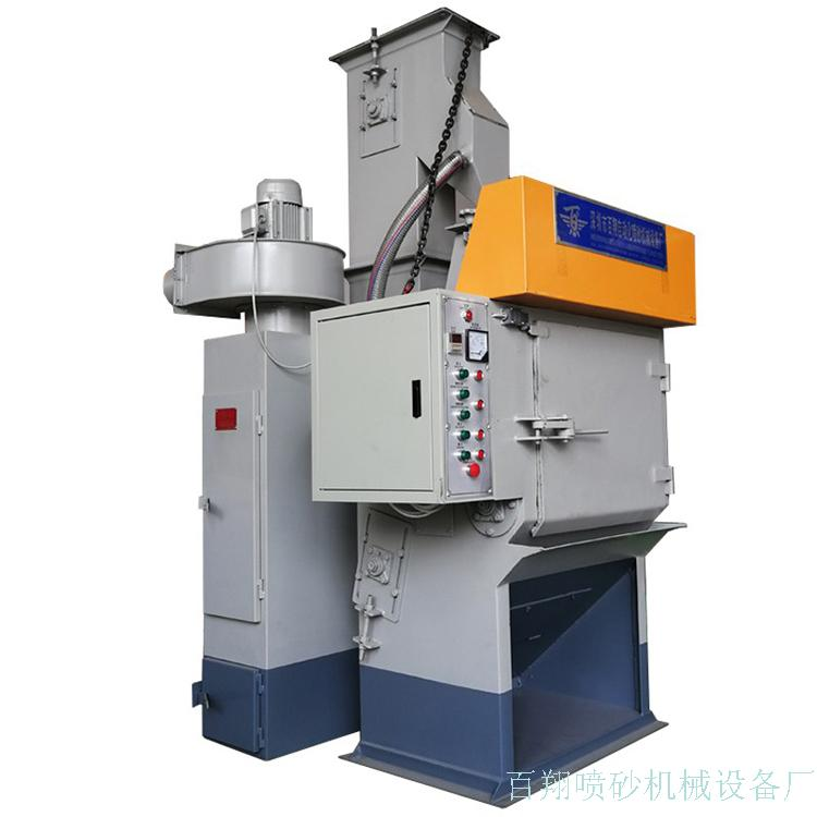 履带抛丸机以前大多数的工厂用来加工小五金件,比如充电头、钻头、刀头等,被使用者一度称为充电头滚抛机,很多厂又将他称为履带机、滚蓝机,这是一款大批量加工五金件的履带式抛丸机,机器内部使用的是锰13钢板,所以设备的故障率很低。这款履带式滚抛丸在加工产品时直接将产品倒入加工舱(可以适当加些阻止产品碰撞的软胶棒在里面,防止产品在滚动时碰伤)关闭舱门,打开电源,设定好打砂时间,然后等抛丸完成后机器会自动停止抛丸,但此时除尘风机还会运作10秒,用来将加工舱里的灰尘吸干净,机器停止运作后,可以将反转开关打开,产品自动出舱。
