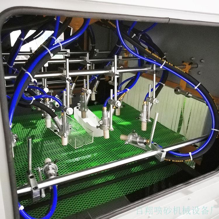 2,本设备配置16支喷枪,由“喷枪摆动系统”控制(速度可调),每支喷枪角度可自由调节枪架实现自动变频摇摆并可定点喷砂,灵活性强。