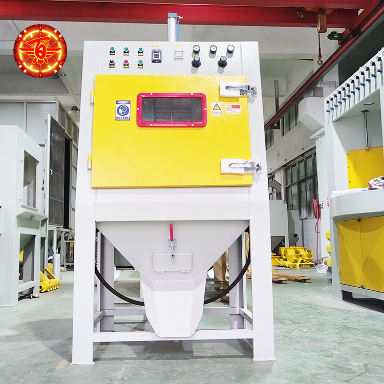 这款喷砂设备可以通过不同磨料来达到喷砂要求,如去PP塑胶,电木等工件的毛边与毛刺,就可以通过用尼龙砂来达到效果,可以只去毛刺,不伤产品。
