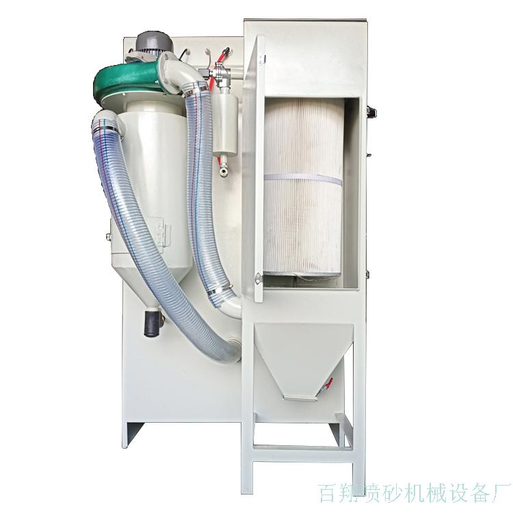 百翔手动喷砂机配备二级分离器,加工时加工舱的灰尘很小,而且砂料回收更好。