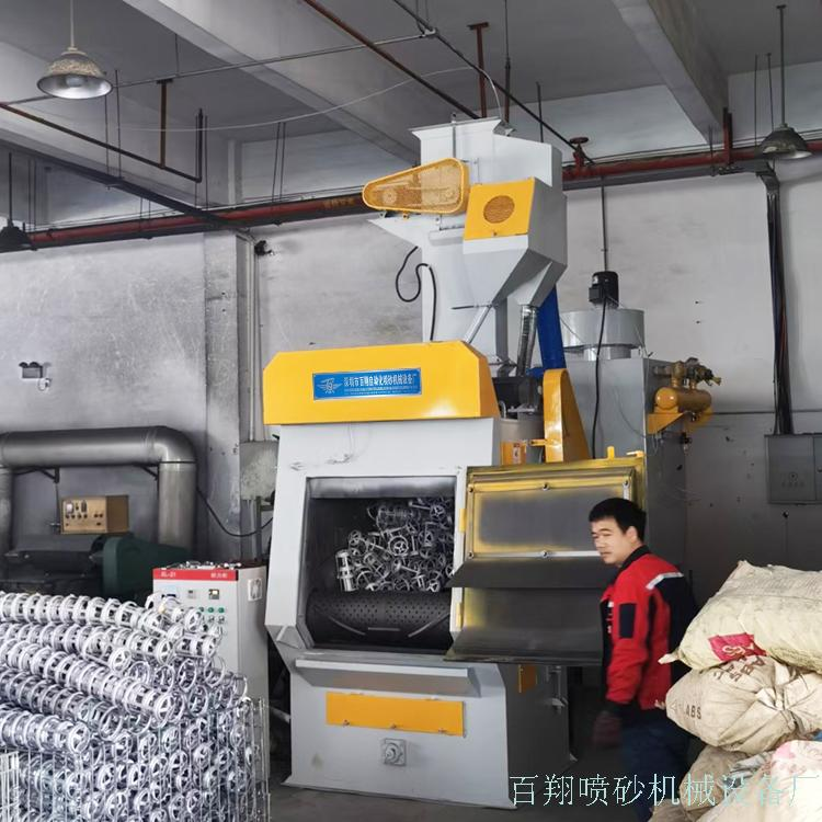百翔326滚抛机是一款无需人员看守的自动打砂机,机器只需要设定好抛丸时间,启动抛丸后加工自动完成,当时间到达后机器自动停机,适合加工各种类型的五金件。砂感均匀饱满。该设备自带除尘箱,加工时噪音小,无粉尘外泄,占地面积小,故障率低,砂料自动回收循环使用,加工效率高。